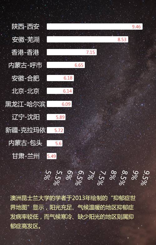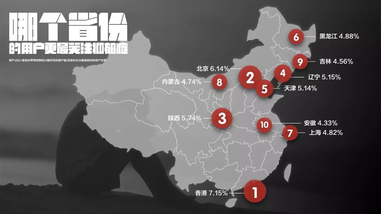 中国关注抑郁症的用户也恰恰集中在气温较低的北方城市。