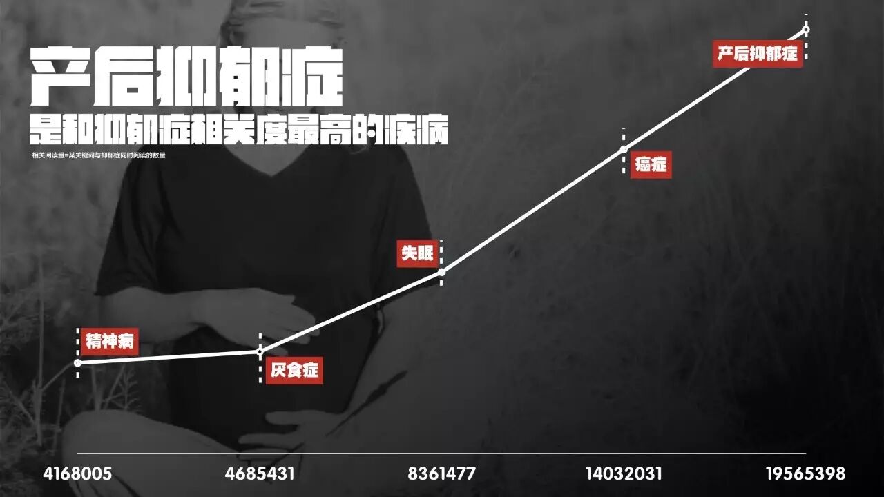 产后抑郁症是和抑郁症相关度最高的疾病(按相关阅读数)