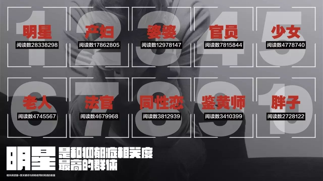 明星是和抑郁症相关度最高的群体(按相关阅读数)