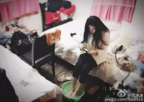 热水泡脚,是很多人的养生理念。范爷作为女神级的女一,拍戏时也得是风里来雨里去,晚上回去泡泡脚,才能元气满满的投入到第二天的工作当中。