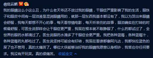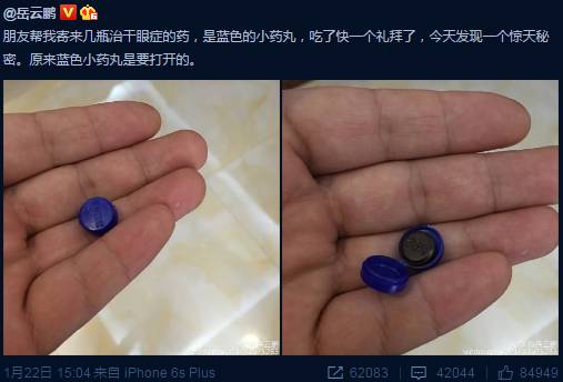 小岳岳吃的蓝色小药丸其实也是一种花青素片,这种蓝莓花青素片对眼睛健康有辅助作用,却无法真正治疗干眼症。目前治疗干眼症最主要、最直接的方式是使用人工泪液,通常不会应用口服药物。