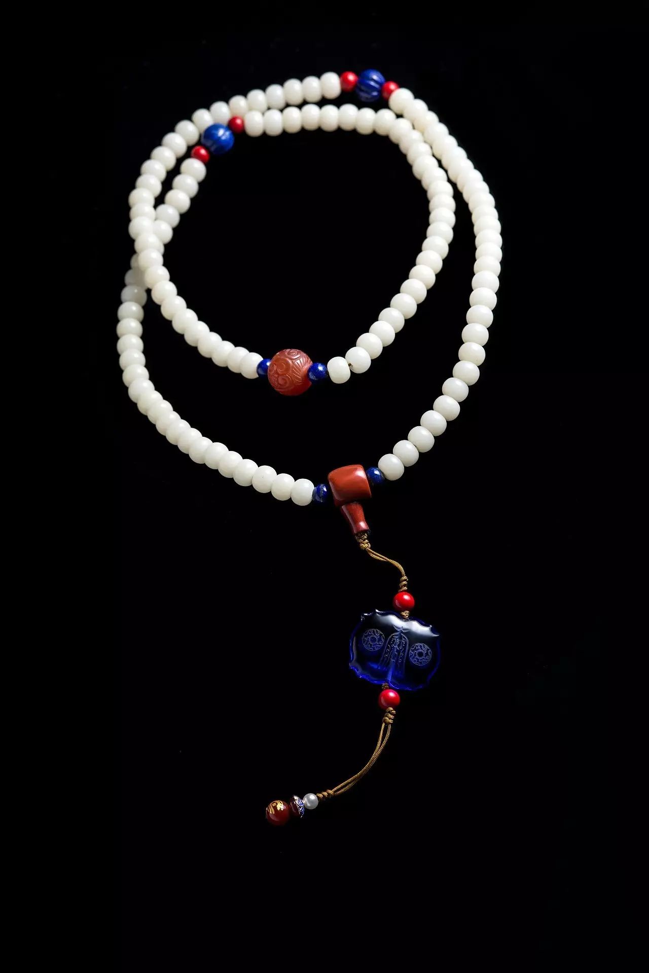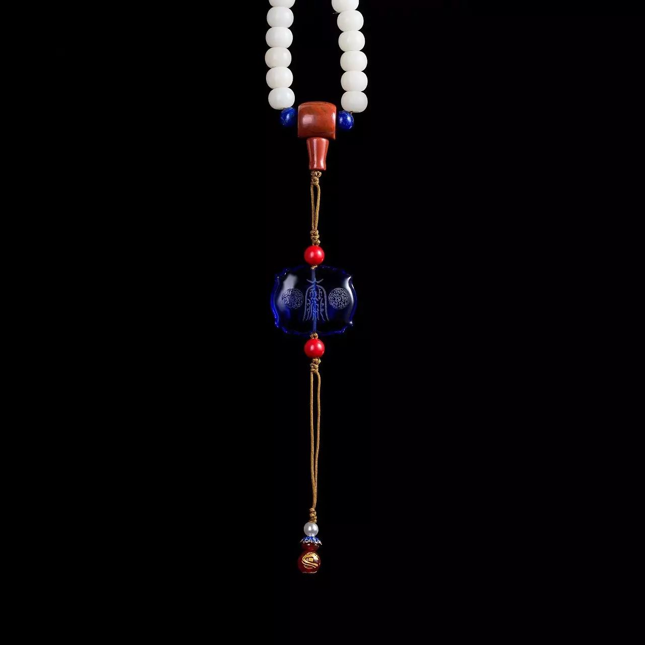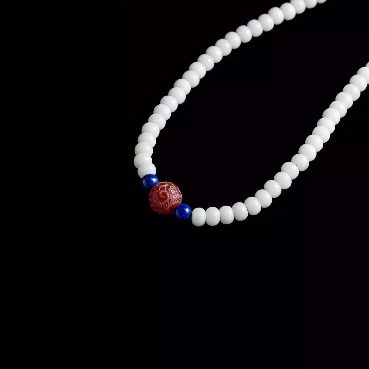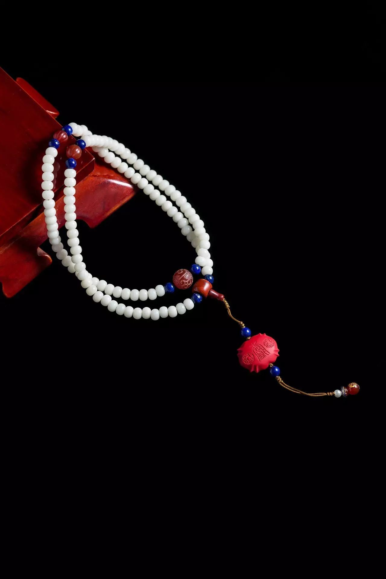 吉祥珠选用菩提根为主材、并加以红玛瑙、青金石、红纹石等精选材质,由技艺高超的匠人纯手工穿制,历经几十道工序。