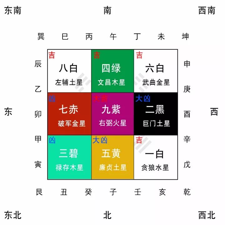 2018年凶位主要分布在:正东破军金星飞临位、正北廉贞土星飞临位、正西巨门土星飞临位、东北禄存木星飞临位。