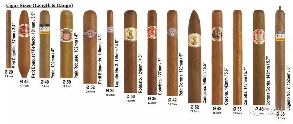 一个特定的雪茄品牌有丰富的型号变化。对消费者来说选择余地较大。不同的品牌,总是热衷于不同尺寸的雪茄。因此,在某种意义上,大口径雪茄也许是优秀的,而小号雪茄则不可认为其口感和制作过程与大号雪茄同样精美,这得取决于你实际品尝的结果。(作者 业子)