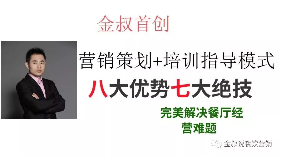 不懂营销,开饭店赚钱太难!我是金叔,专注餐饮营销十二年,餐饮裂变营销第一人。用营销帮您破解餐厅经营难题。每天一篇原创文章,分享我的见解和感悟。