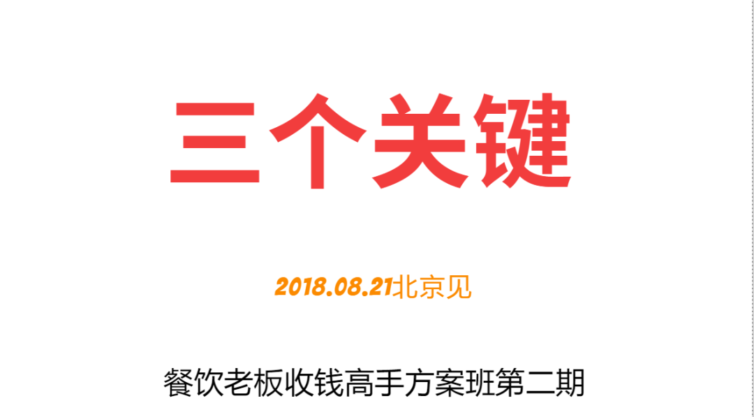 好了,今天早点休息,明天开始为期两天的《餐饮老板收钱高手方案班》正式开课。也请参加学习的餐饮朋友,早点休息,保持好的精神状态。