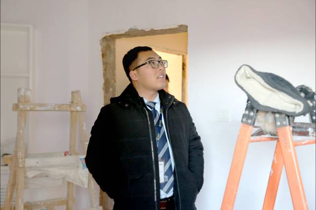 李超在帮何大爷查看装修情况