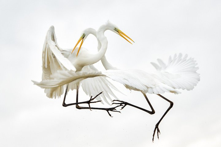 《白鹭》,拍摄于匈牙利Kiskunság国家公园,这种优雅的鸟类其实是好战的,这样的空战很频繁,即使不是在交配的季节也不缺少食物。摄影师: BenceMate