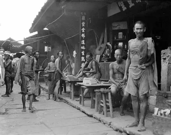 1917年,湖北宜昌,街头理发摊点。甘博/摄。