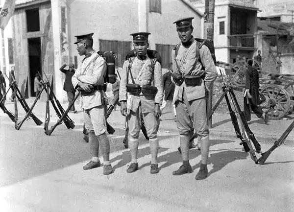 注意看这位警察的帽子,虽是民国了,但警察的帽子与大清朝衙门里的衙役帽子样式很像。