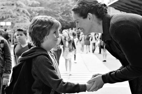 一个事业有成的绘本插画师,一个正在写作论文向着学位做最后冲刺的普尔曼太太,因为生育了一个天生残疾的孩子,不得不搁置自己的事业,全身心地养育起奥吉来。思想至此,我们不禁为我们能够拥有一个出生时被产科医生打了10分的孩子,而倍觉幸运吧?当我们同情为靠拢普尔曼太太而显得有些憔悴的茱莉亚·罗伯茨时,有没有想过一个问题?普尔曼太太为什么要在奥吉到了5年级的年龄,坚持让他去学校而不是像以前一样自己在家教他?真的如她自己所说的,是自己的数学能力已经教不了奥吉吗?“我们不能一直保护他……我们必须帮助他学会处理问题,不能只能逃避问题……”这才是问题的正解。为了这个正解,普尔曼太太花费了比在家教奥吉多得多的心血和忧烦,只要看过电影的观众,无法忘记在学校门口等候第一天放学的奥吉时普尔曼太太的表情:忧心如焚!