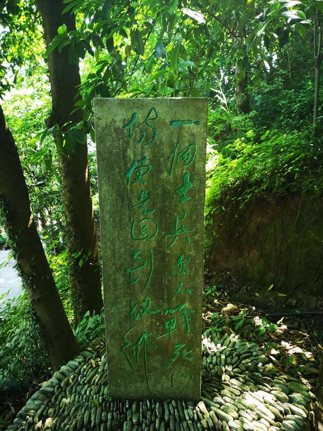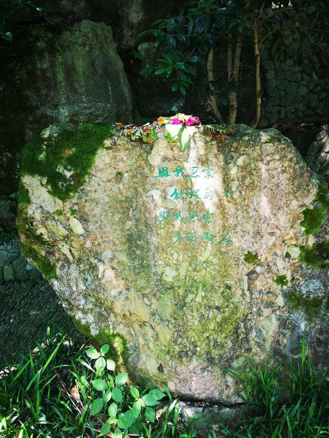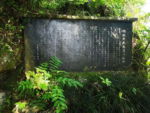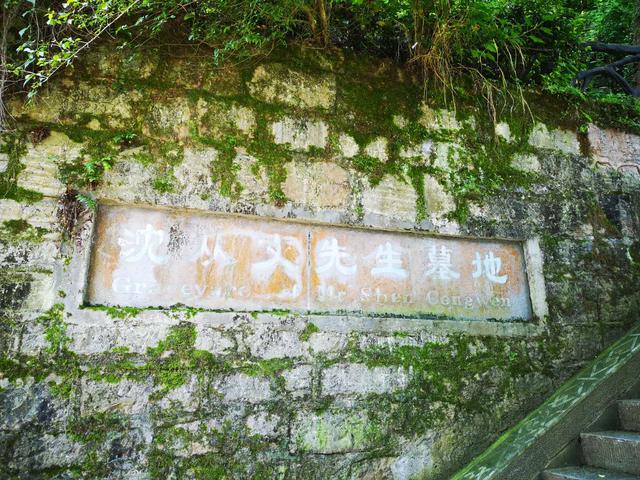 果然,五分钟不到我们已经面对一座听涛山了,小山的山体被苔藓、草本植物和树木铺排得绿意葱茏,6月凤凰的太阳已经非常炽烈,那天,温度又突然飙升到摄氏37度,但是,阳光却拿先生墓地的植物无可奈何,它们只好拼了命地挤进去,等到落到草木上苔藓上台阶上,锋芒已经尽失,只留下温暖的杏色,柔和地涂抹在草木上苔藓上和台阶上,山头的色彩和层次因此变得丰富起来。沿着像是有着秘藏的台阶慢慢攀爬,一块玄黑色的石碑出现了,一块浅褐色的墓碑出现了,一块灰白色的石碑出现了,一块方方正正的墓碑出现了……一黑一白两块方方正正的大石碑,是家乡人献给先生的称颂,形状自由的那块石碑上是黄永玉先生的手书“一个士兵要不战死在沙场便是回到故乡”,除此而外的石碑,碑文都是简简单单的“沈从文先生墓地”或更加简单的“沈从文墓地”,姓名前连个前缀都没有,想必,这是墓主人的心愿。 越简单越丰富,何况,沈从文是谁,还需要赘言吗?
