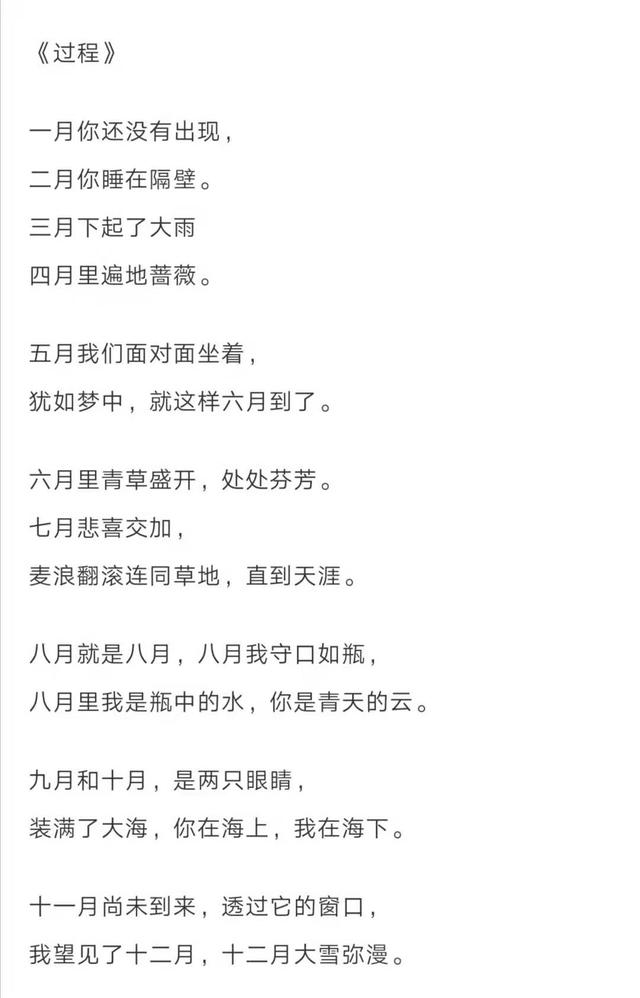 以爱为名,《人世间多是辜负》的所有篇什中最打动我的,是《一月你还没有出现,十二月大雪弥漫》。文章先是全文照录了林白的一首诗《过程》——我得承认,林白的《过程》好得我在第137页上停留了许久,现在回忆,我有些疑惑,是林白的诗还是李伟长的文章读得我那一晚坐立不安?“十二个月,讲述了一个故事的开始和结局,其中的过程才耐人寻味,所有的意象都被赋予了克制又内敛的情感,没有任何关于喜悦、忧伤、相见和分离的文字,甚至没有一个爱字,却令人想起爱的过程,想起了生命的过程,看似纯粹,却又广博,汉字的美,都在其中”,哦,没有这样的解读,与诗缘浅的我又怎能体会出“三月下起了大雨/四月里遍地蔷薇”这样的诗句里,尽是人间深情。