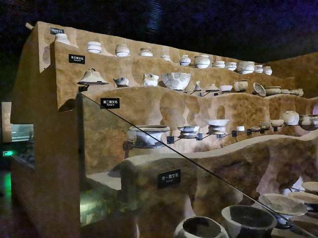 戴上口罩走进遗址博物馆,发现根本就没法好好看。手机上显示,当日当地的气温高达摄氏37度,又正逢南方的黄梅雨季,天气闷热难当可想而知,但遗址博物馆里没有空调,几个落地电风扇在角落里疯狂地摇头,近旁,都坐着一位工作人员。幸好,博物馆了唯一可看性强的,就是将挖掘出来的破碎了的陶罐拼合后按照代纪分布在一个搁架上的展厅设计。我久久地站在搁架前体会从猿到人之后直立起来的人类他们的双手技能是怎么一步步渐近的。