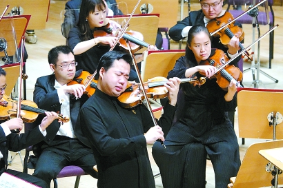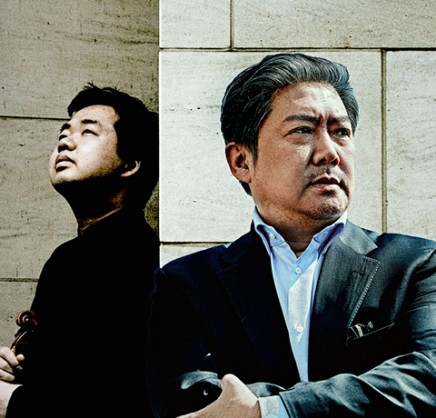 开幕演出中的两位主角,指挥余隆和小提琴家宁峰