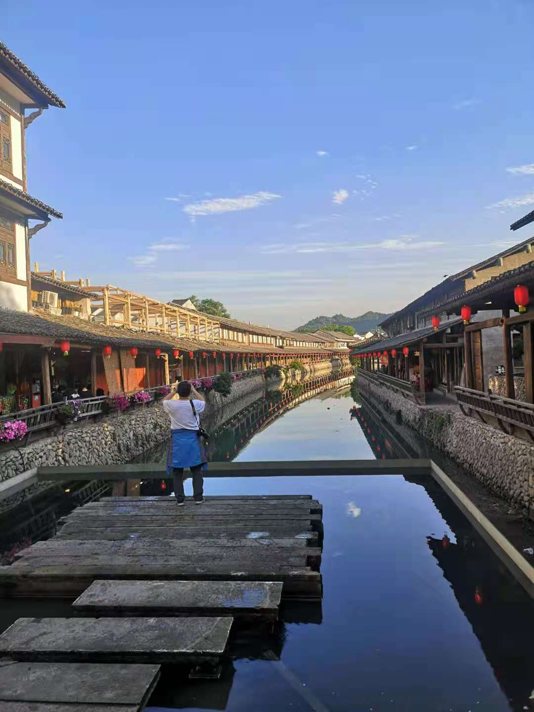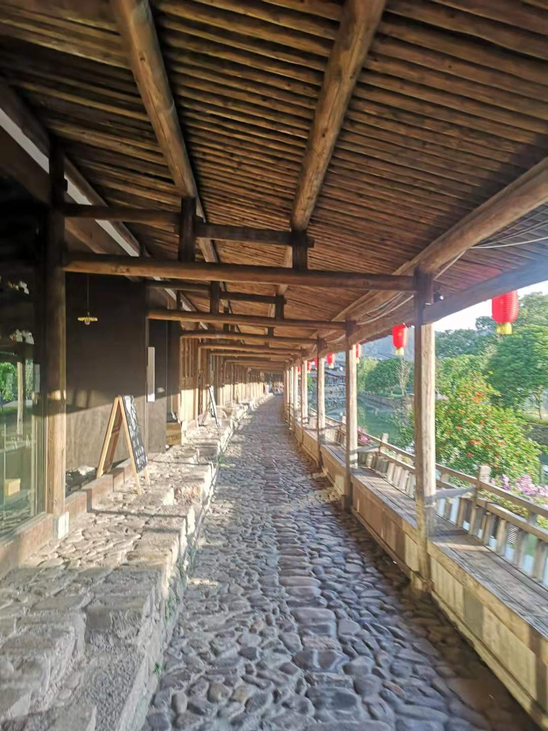 从丽水街塔山公园这一头进去,爬上文峰塔转了一圈,再沿着汤山的石阶徐徐下行,就走在了丽水长廊上。丽水街有接官亭和丽水古桥,可我觉得,能在游人稀少的临水而建的古街上漫步,已是这次无意中选择岩头镇张大屋村的大屋小栈停留一晚给我的最大奖赏。
