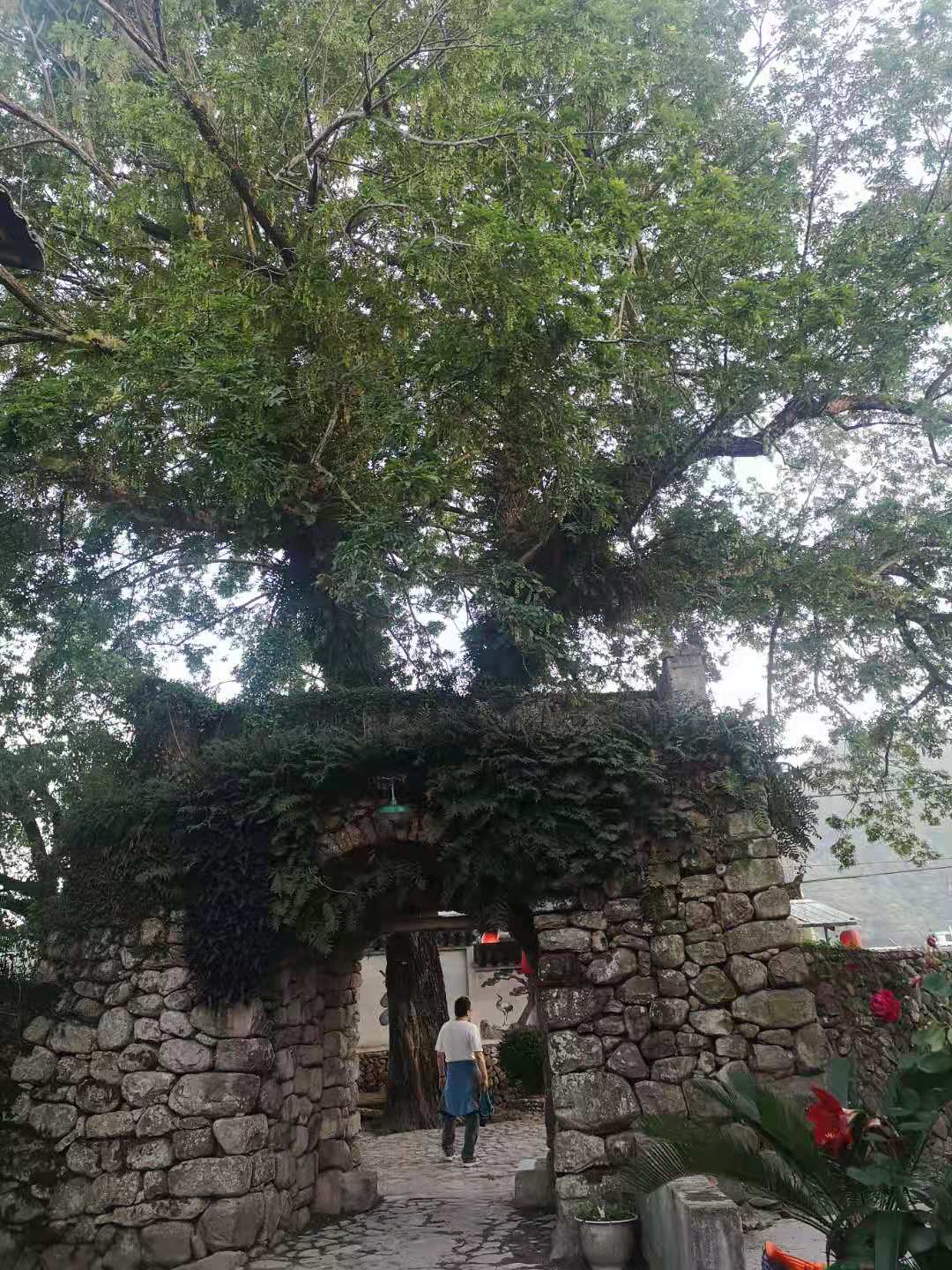 离开丽水街穿越芙蓉古村回大屋小栈,走的已不是来时路。迎面那一扇青石垒成、岁月已将草木密密匝匝地绕满门洞的石门,让我惊诧:芙蓉古村还有一处宅院吗?正在此刻,一辆满载物件的电动三轮车破门而来,这让我疑上加疑,快步走上前去——原来,就是一个门洞,芙蓉古村著名的南寨门。