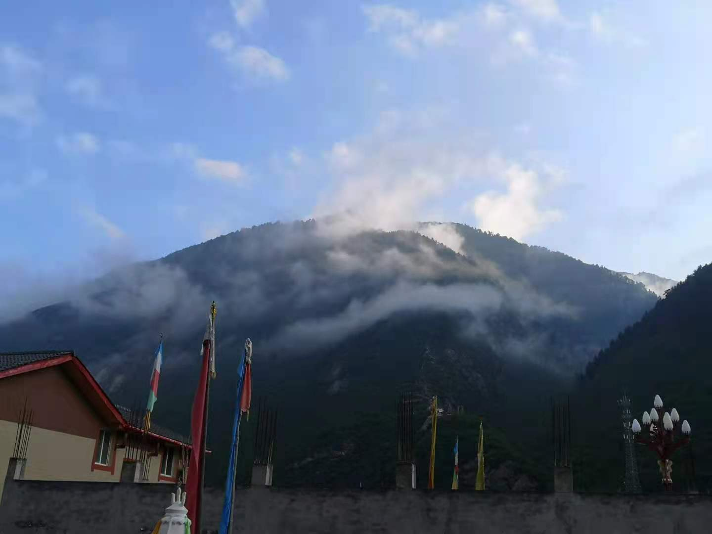 离开青木川不久,我们的导游就开始叨叨:“我们现在离开汉区进入藏区了。藏区的天气没有天气预报。藏区的天气没有今天阴天明天雨天。藏区的太阳说出来就出来了,藏区的雨也是说来就来。你们身边一直有一件外套,就对了。”