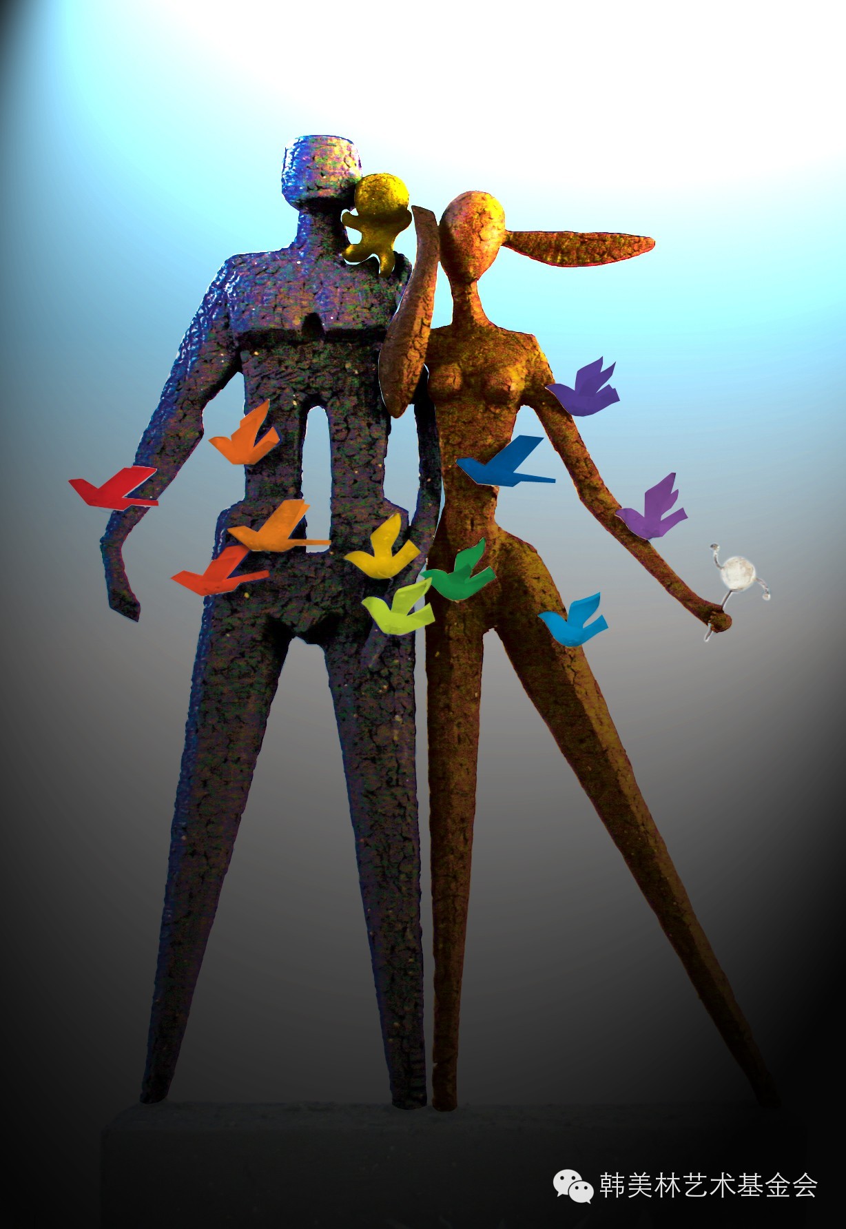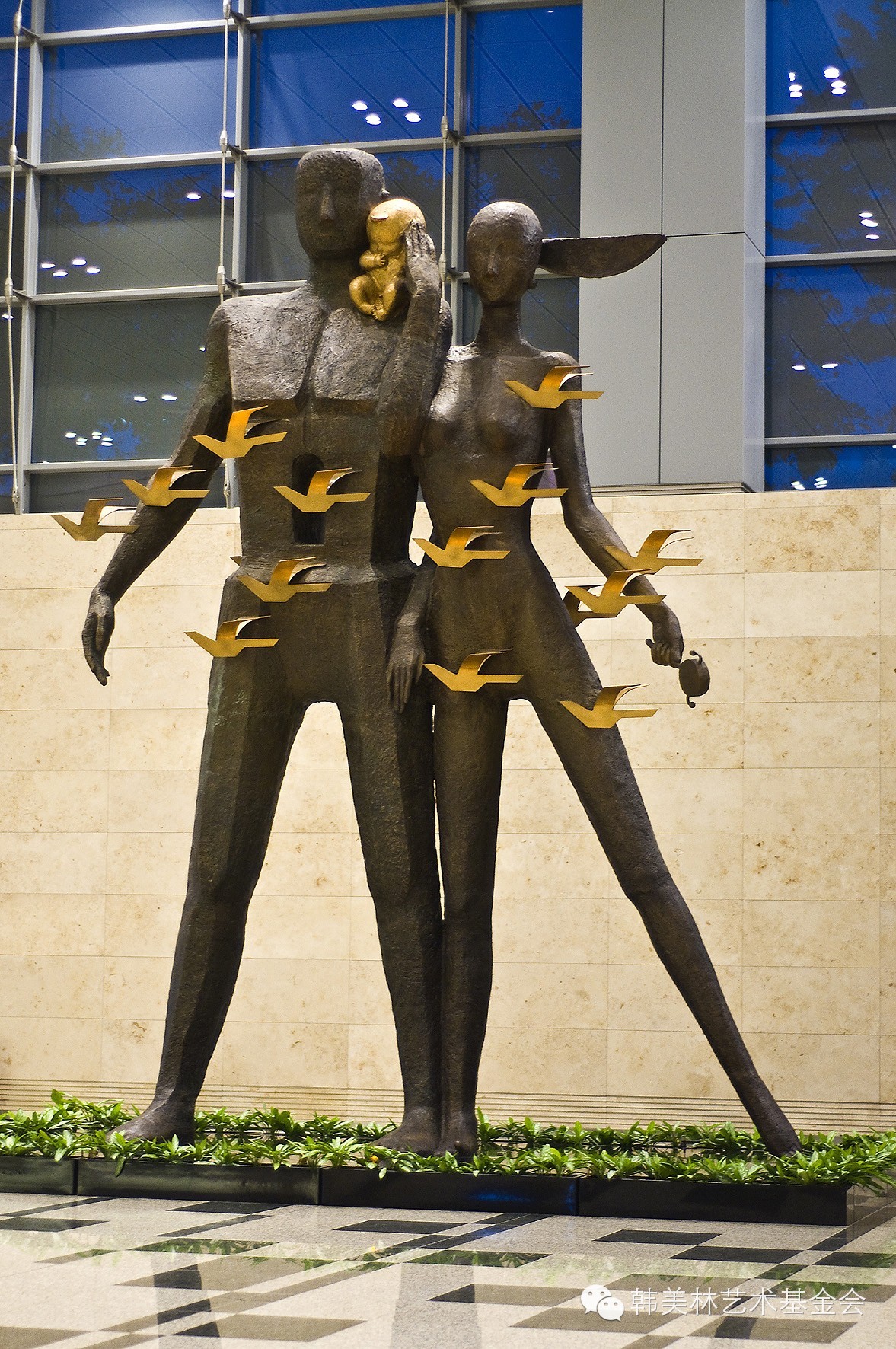 《回家》,新加坡樟宜机场里的韩美林雕塑