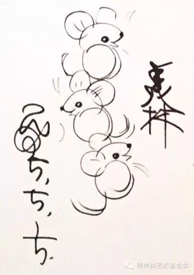 韩美林为菊地市长遗孀画了三只小老鼠
