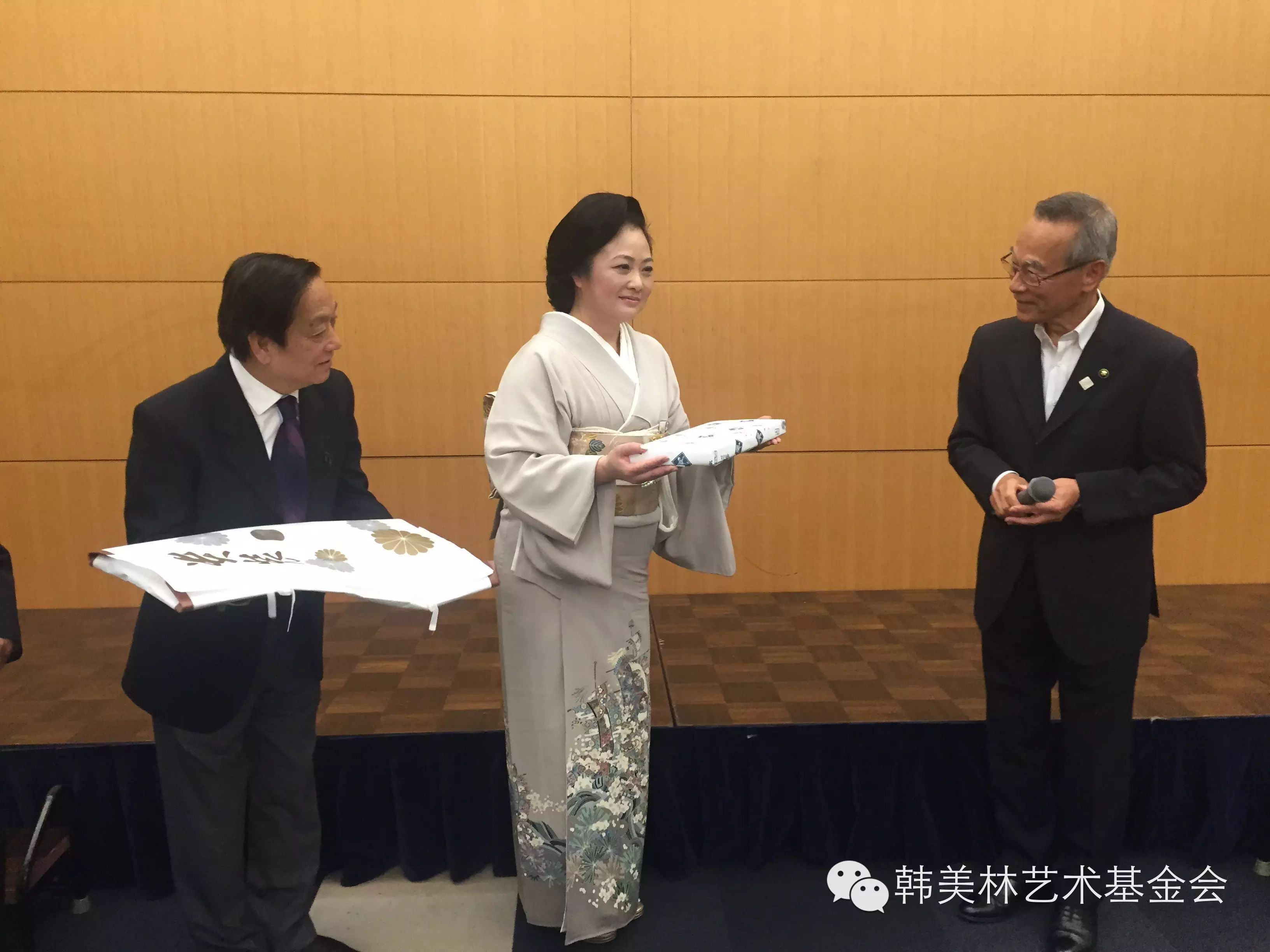 井田隆一市长向韩美林夫妇赠送和服