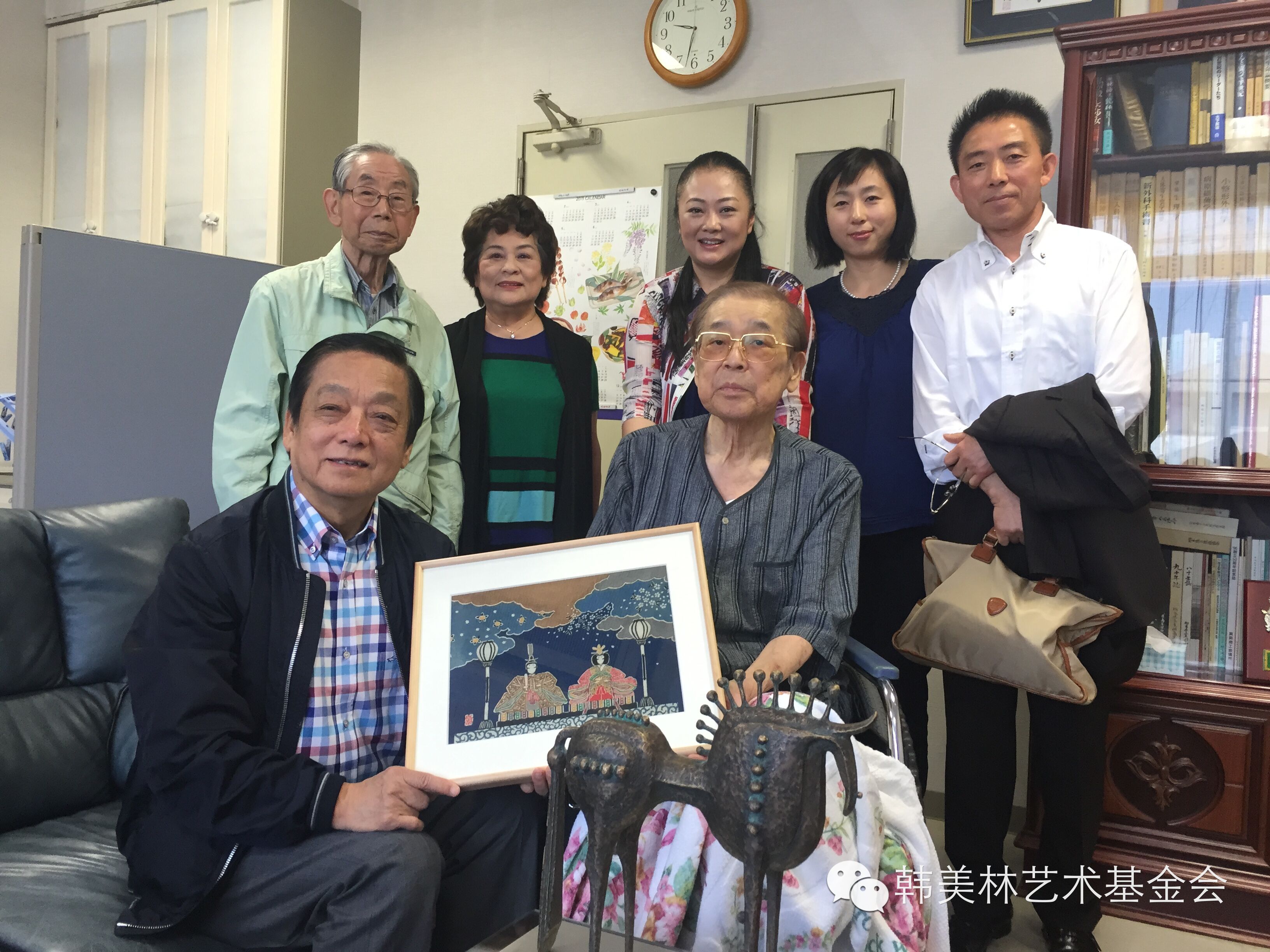 昨天,韩美林夫妇还应邀来到真冈前任市长福田武隼工作的医院。福田市长也与韩美林夫妇相识、相知已经20多年,尽管近期他不幸因为一场意外而截肢,但他还是坚持着出来接待韩美林夫妇。他们安排韩美林夫妇进行了体检,福田市长坐着轮椅,认真细致地为韩美林夫妇分析了检查的各项指标。