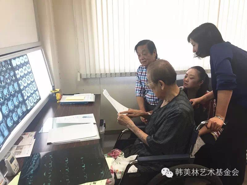 坐在轮椅上的福田市长认真分析韩美林体检指标