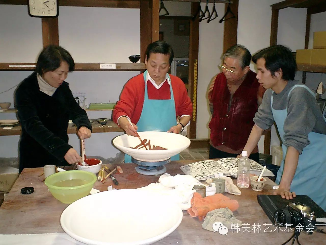 2015年5月15日下午,在真冈市的安排下,韩美林夫妇及工作人员还专门拜访、参观了藤原陶坊的益子烧,双方就陶瓷制作经验进行了交流。