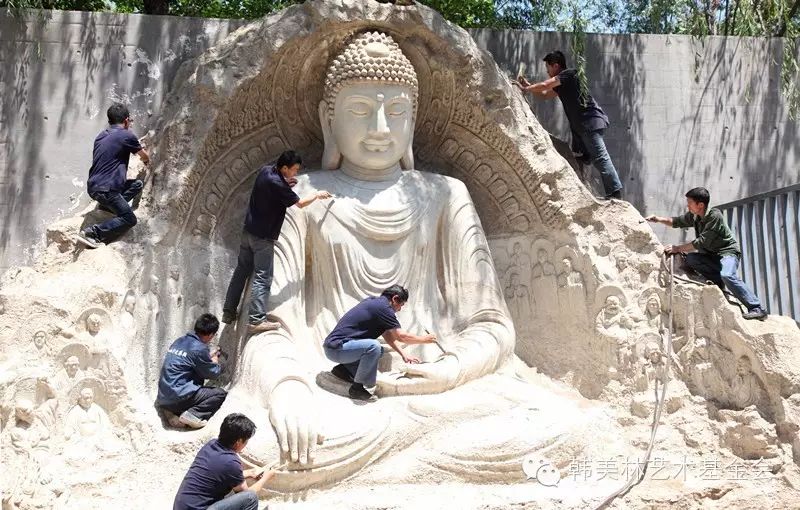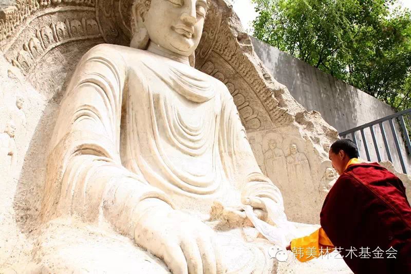韩美林认为,中国的传统艺术主要有三大载体:民间艺术、宫廷艺术以及佛教艺术。自己与佛结缘,早年间曾遍游祖国各地的古刹、寺院、洞窟,搜寻被深藏、被埋没的千古佛文化。当他遗憾地发现很多地方的佛像雕塑被破坏、被斩头,当即发愿,决心制作千尊大佛,以弥补历史的遗憾。