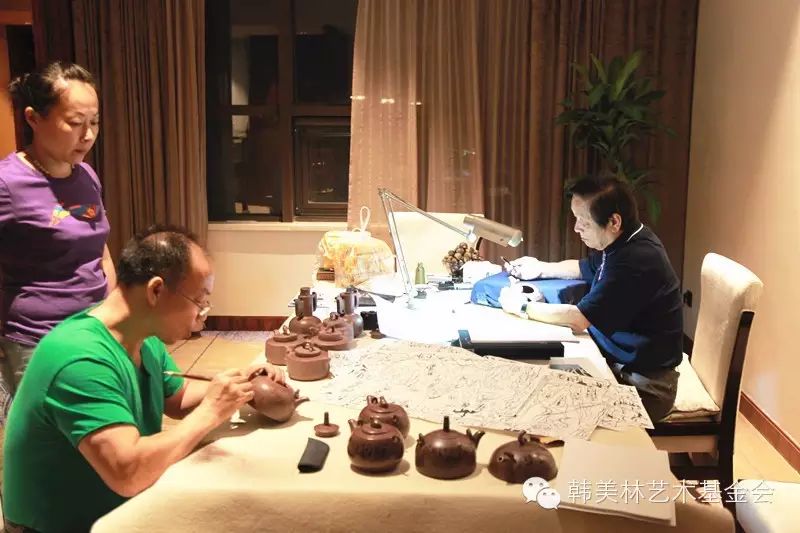 8月23日—26日,为银川韩美林艺术馆开馆而筹备作品的韩美林周建萍夫妇,来到“中国陶都”宜兴丁山,创作紫砂壶。