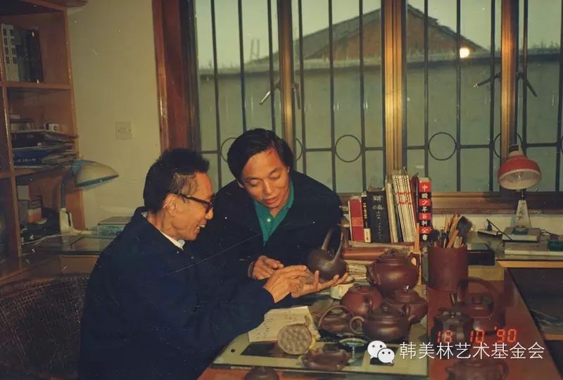 1983年,韩美林与顾景舟在江苏宜兴研究紫砂设计