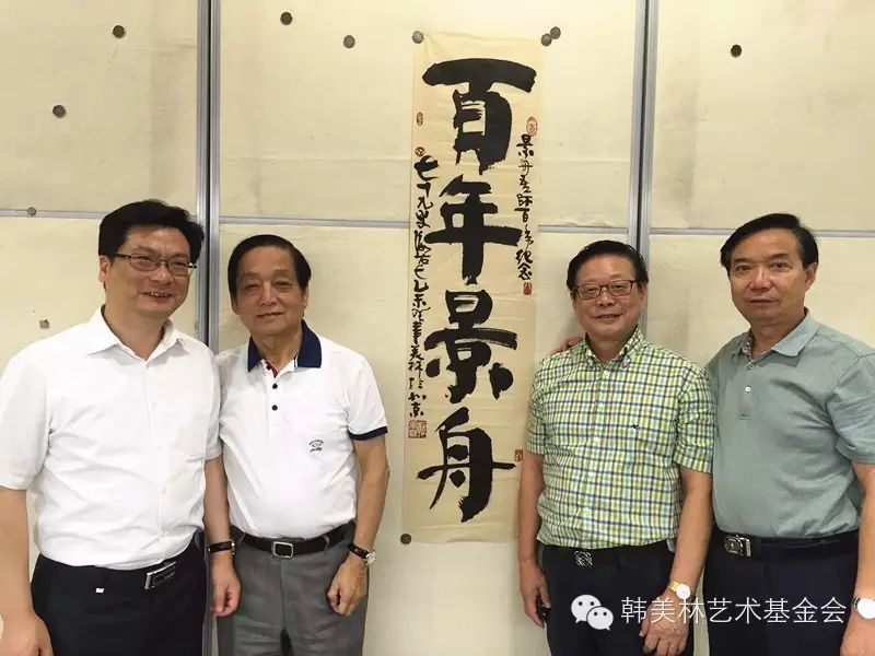 宜兴市市长张立军(左一)来京拜访并请韩美林题字