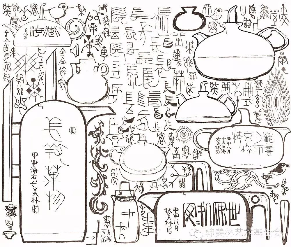 韩美林与宜兴丁山紫砂界已有36年的情缘。早在1979年,韩美林首次来到宜兴,就与紫砂大师顾景舟、汪寅仙等人合作。