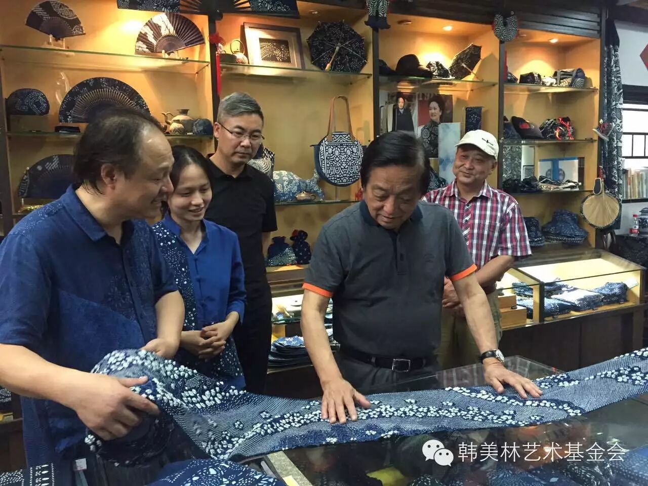 韩美林参观南通蓝印花布博物馆