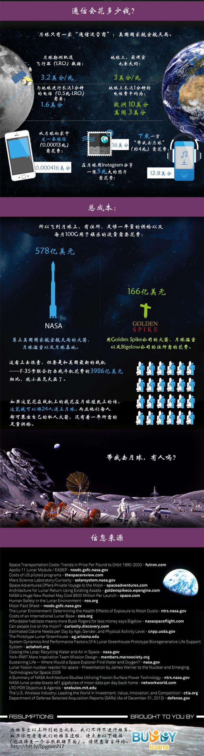 不论你怎么分配花销,住在月球上的花销都看上去太过昂贵,没法实现。我并不了解你,但就算给个特价,算下来也需要1600亿美元,这是一般人绝对负担不起的。