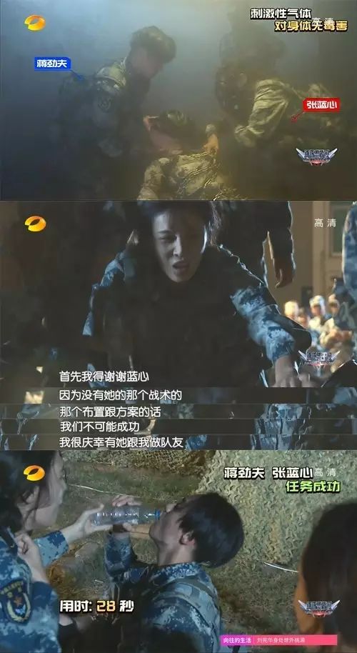 这期的《真正男子汉》有点尽皆过火尽是癫狂的意味,一切都在玩真的,而且所有的训练都带上了冷酷甚至疯狂的意味。“你们到这里不是在拼搏,而是要拼命”,刘队长吼出这句话的时候,他的表情与之前面对张蓝心时的羞答答简直判若两人。冷酷教官刘队长大显威严的时候,张蓝心正在泥潭里扛着弹药箱一遍又一遍的蹲下起立。