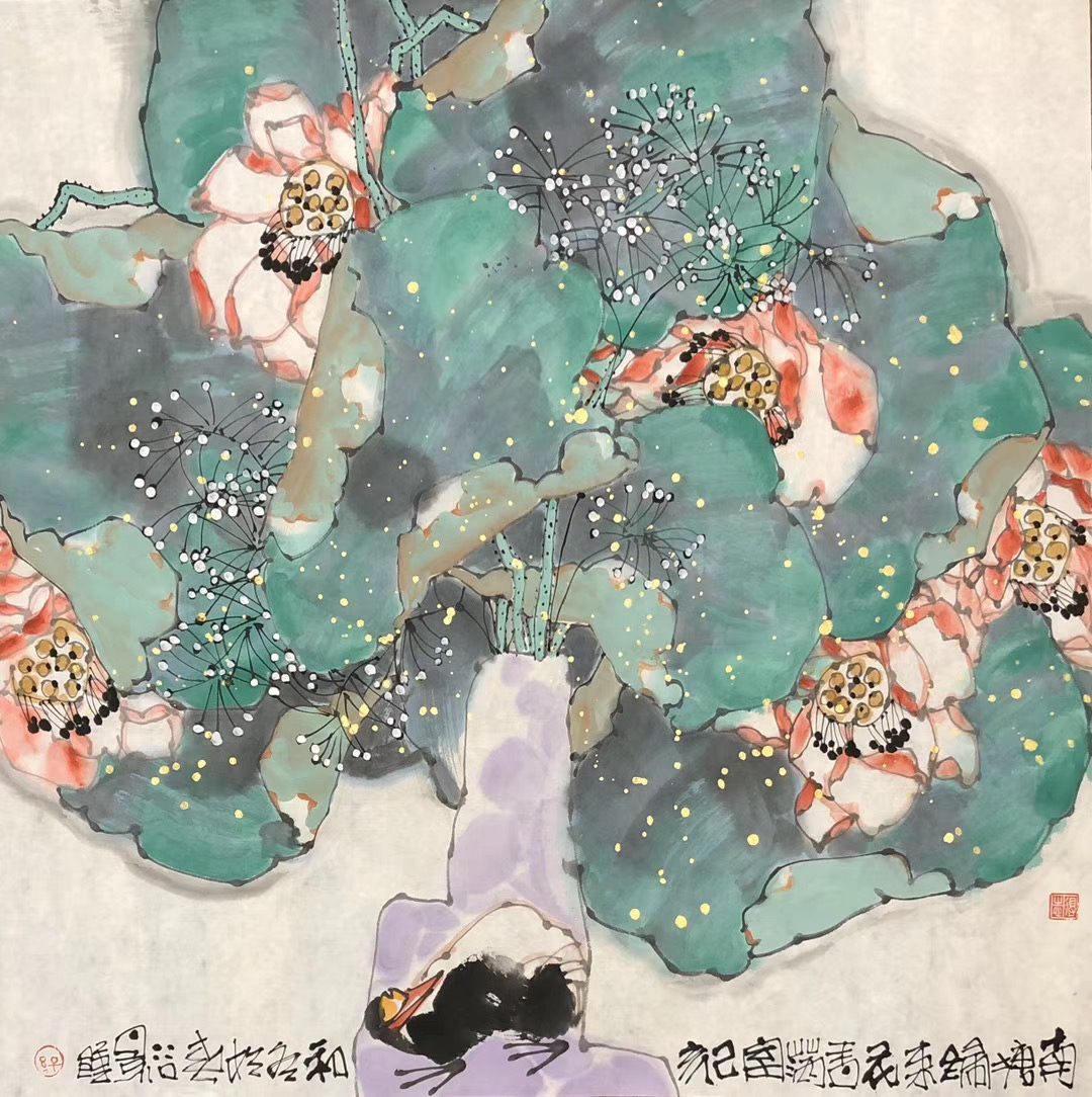 古代文人画“诗不能尽,溢而为书,变而为画,皆诗之余”,不过往往“用笔草率,造型粗简”,而景隆以大写意为旨归,寄情花鸟,在苦学传统的基础上,匠心独运,创造出符合传统审美,又具有现代风格的新中国画一路,精研古法,博采新知而化古为我,既没有走向狂放抽象、横涂竖抹的惊世骇俗,又没有过度修饰、搔首弄姿的取媚世俗。有个性,有特点,有品位,既耐读、又耐看、更耐品。