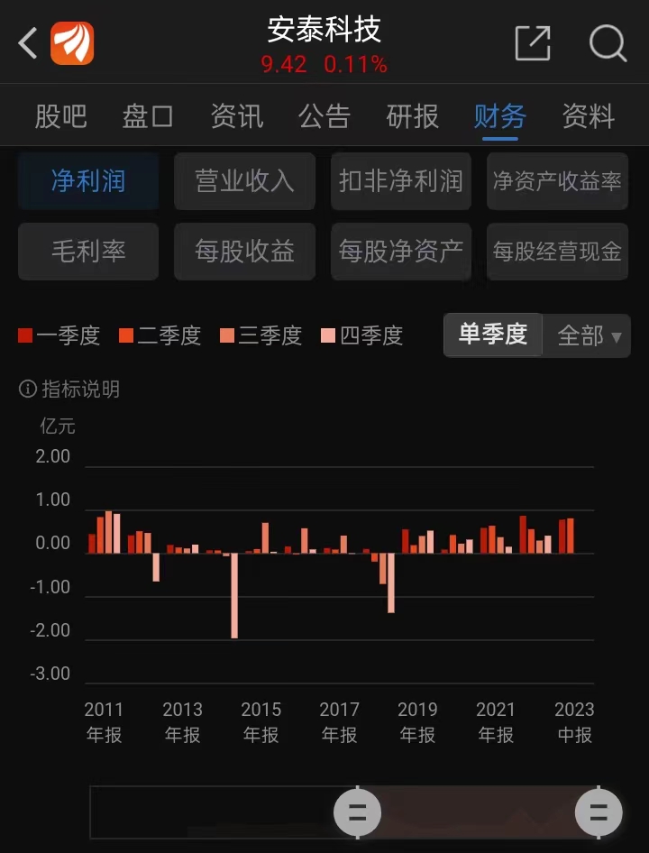 安泰科技2023年半年报净利润创了上市以来半年报净利润最高值。