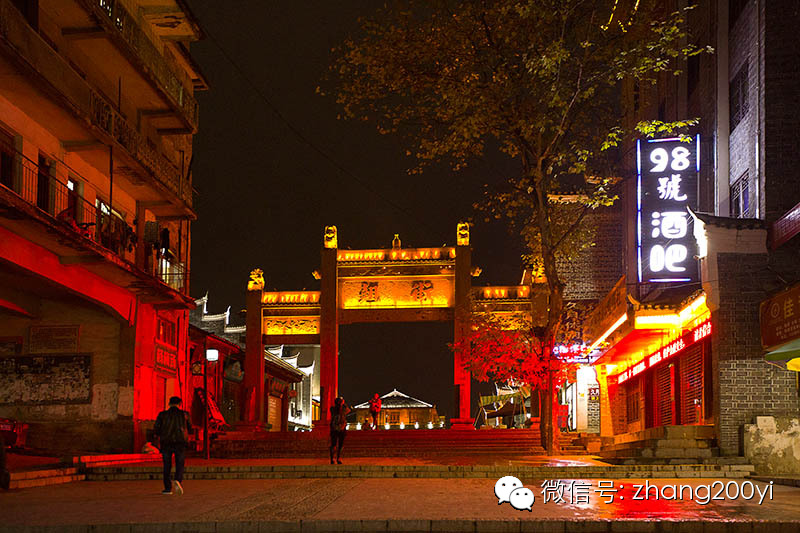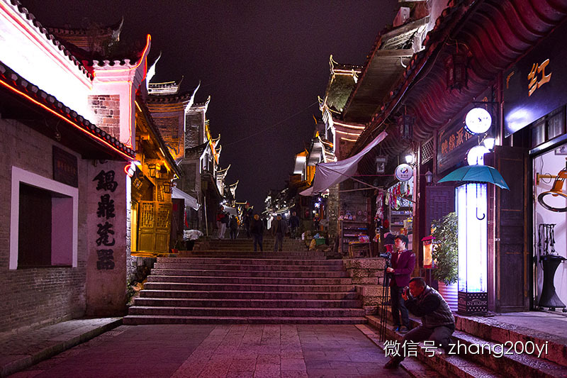 黎平县最有名的翘街又称东门街,始建于明洪武十八年,因两头高中间低,形如翘起的扁担而得名。明清时期,这里商贾云集,百货齐聚,为黎平商业贸易中心,繁华热闹若“清明上河图”也因此有保存完好的明清古建筑群,被列入中国历史文化名街名录。夜幕中的翘街灯光朦胧,建筑飞檐翘角鳞次栉比,两旁屋舍既有人家也有店铺,门或敞或掩,店铺里也不一定有人看守,平添静谧与安详。踏着青石板路,走在古老的街头,越发感觉清幽安静。