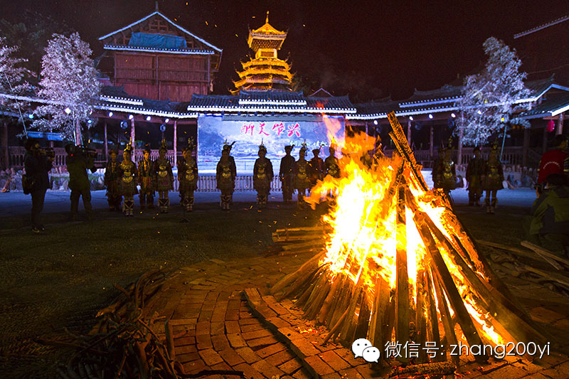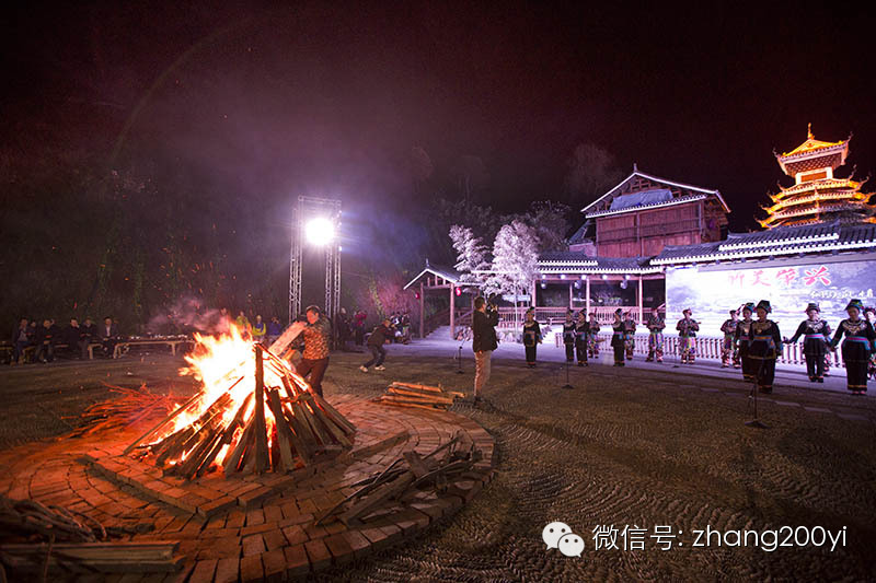 夜幕降临,男女青年们意犹未尽,又集于鼓楼围坐,火塘燃起旺旺的篝火。人们唱起了大歌,如痴如醉,不知天之将明。