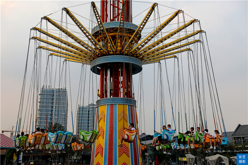 推荐的第三个游乐项目是雷神之锤,经典的大摆锤。各位长头发的女孩子,在玩这个项目时,一定要把头发扎好,不然在下面看就像一群海带在天上飘。这个相对来说就跟过山车差不多,如果接受不了离心的感觉或者容易头晕的朋友就要量力而行了。