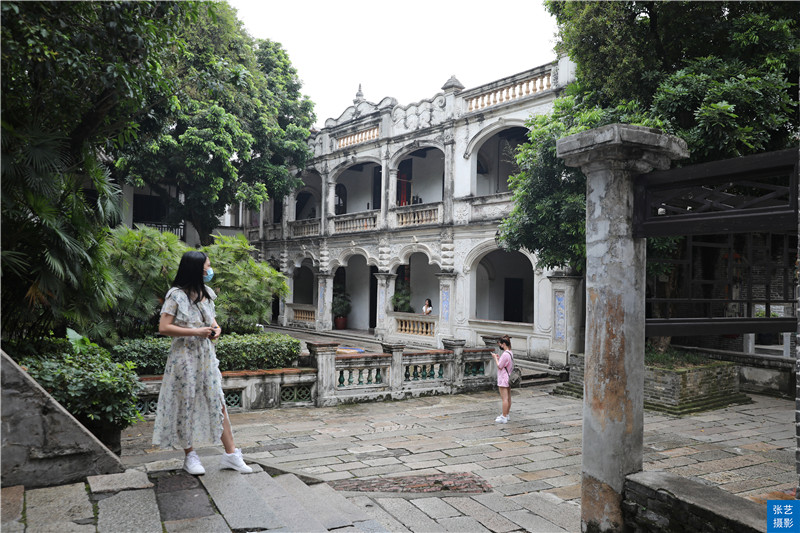 佛山岭南天地里有一座清末民初的小庭院,至今保留着中西融合的两层小楼,偶尔二楼会飘出悠悠的古琴声院子里参天的龙眼树,枝繁叶茂,每年夏天还会结出丰硕的龙眼。