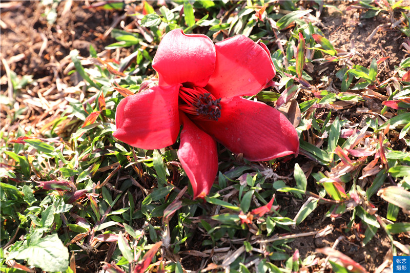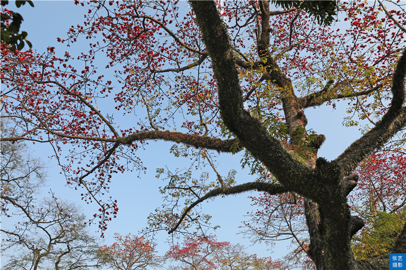 每年的三、四月份,春日回暖,木棉花就会开满梢头。然而,今年进入二月,广州大街小巷的木棉花就已竞相开放,一朵朵木棉花火红如炬、俏立枝头,一片片绚丽的艳红在春风中悠然摇曳。