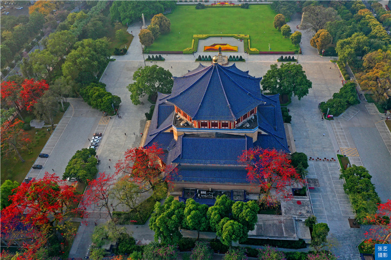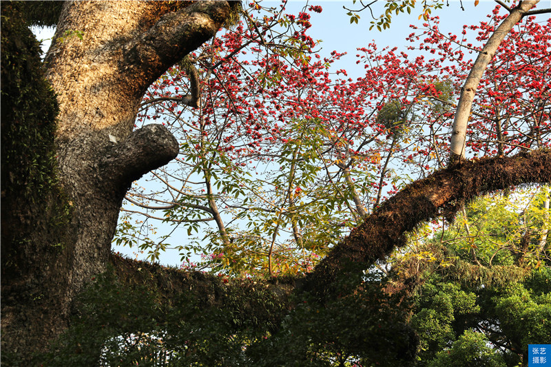 今年春天,在中山纪念堂,藏着一棵有着350岁的“木棉王”昂首绽放,为满园春色绘上重彩艳光,火红的木棉花犹如一团团焰火,洋溢着奋勇争先的新气象。