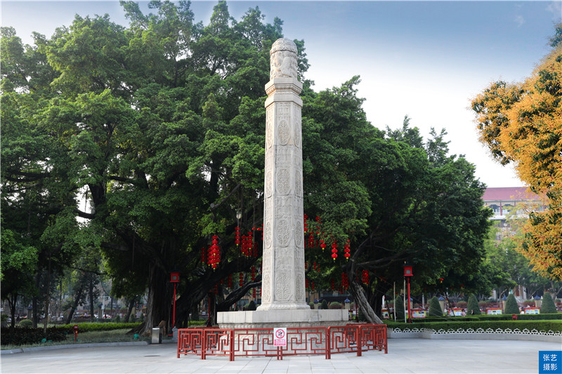 木棉王脚下有一块立石,上面刻着广州原市长朱光所作词《广州好》:“广州市,人道木棉雄。落叶开花飞火凤,参天擎日舞丹龙。三月正春风。”这首词正是中山纪念堂木棉王的最佳写照。