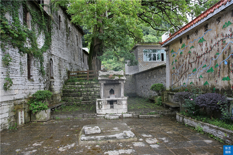 这么幽静的庭院原来是一座具有一百年历史的学堂,在屯堡的后街河岸上,跨过一座石桥,立着一座古色古香书院式的石木结构建筑,那就是天龙屯堡人儿时读书的地方——天龙小学。当地人称它为屯堡的“三味书屋”。