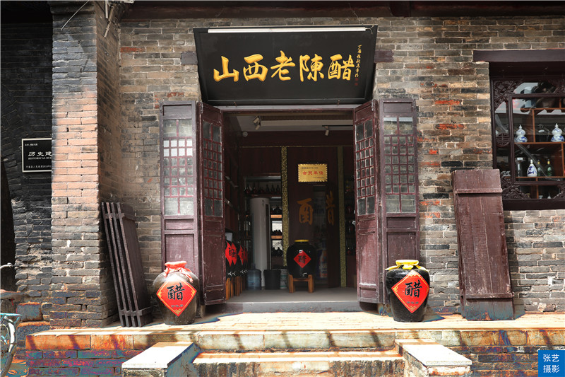 逛古城的街头巷尾,就能闻到一股子浓香的陈醋味,看到各种门店里的大小、各种颜色的醋罐、醋坛子,也被摆在一个个紧挨着的醋店内外,“纯手工酿造”、“古法酿造”、“纯粮老陈醋”的牌子随处可见,在古城的街头巷尾吸引着无数游客。