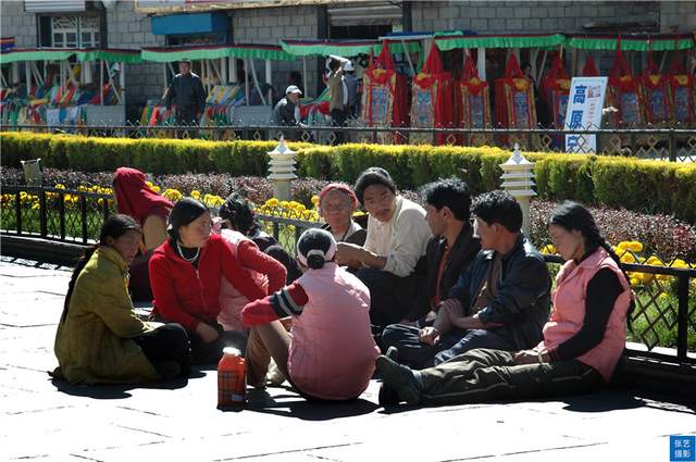 拉萨街上行人匆匆忙忙地行走着,我一边好奇地观察行人,一边举起相机给感兴趣的地方拍照。