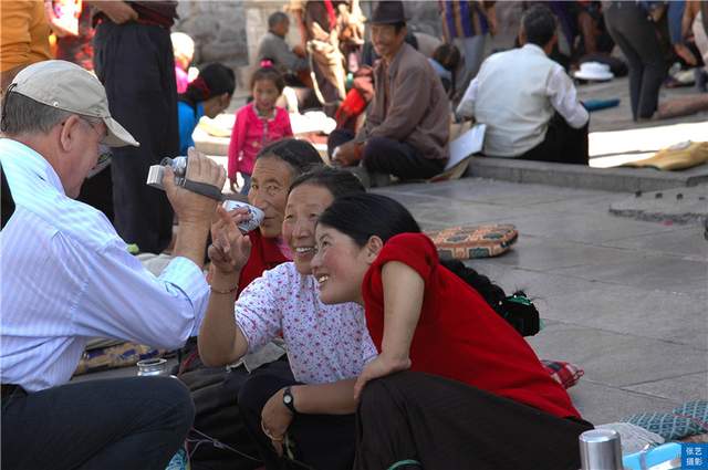 手持转经筒,口中喃喃念着经文,黝黑的脸堂泛着红光的藏族老人,还有 藏胞的小孩子们快活地跟在你的后面要着圆珠笔,人群在眼前川流不息地漂浮着,啊,这就是拉萨!