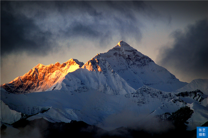 峰顶终年积雪,一派圣洁景象。珠峰地区拥有4座8000米以上、38座7000米以上的山峰,被誉为地球第三级。